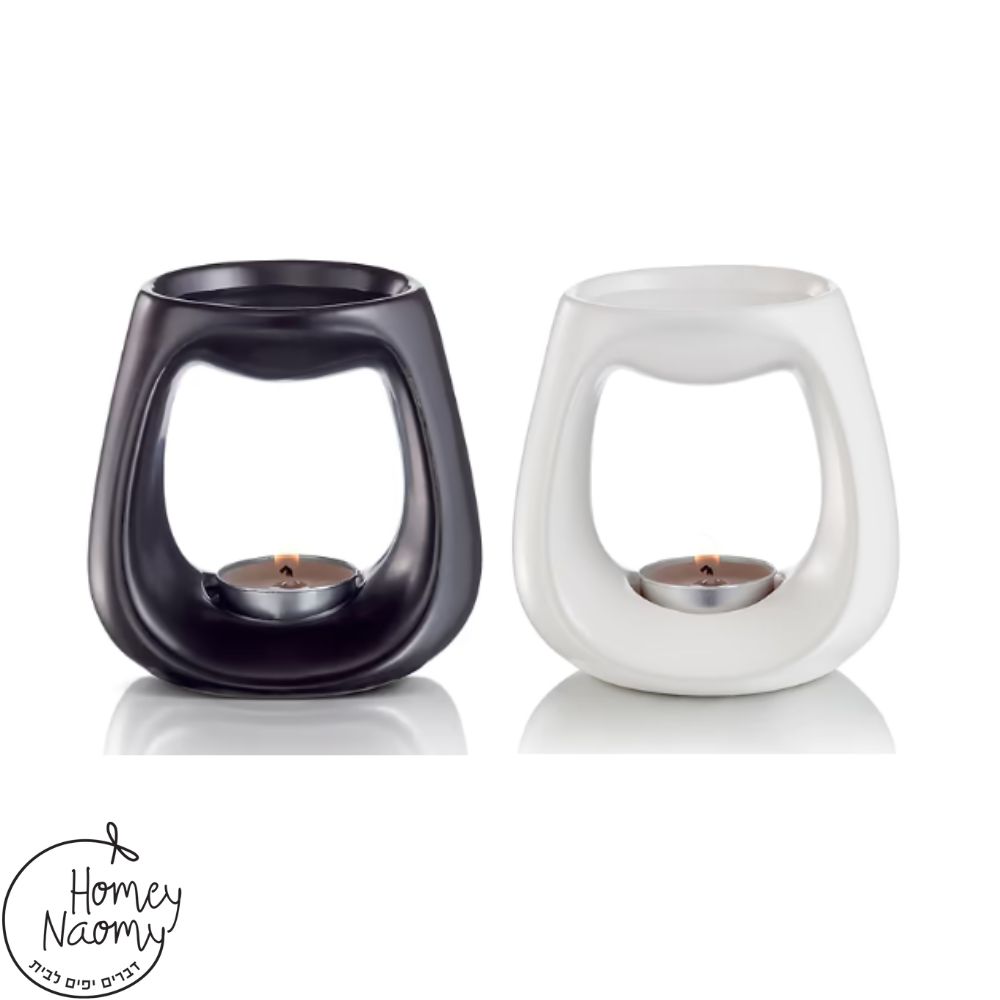 מבער קרמיקה בצורה קונית לשמנים ארומטיים גובה: 10 ס”מ צבע: יש לבחור שחור או לבן יש להניח מים או מלח גס בתוך הגומחה העליונה ולטפטף 3-4 טיפות תמצית שמן בושם (ניתן לרכוש כאן)