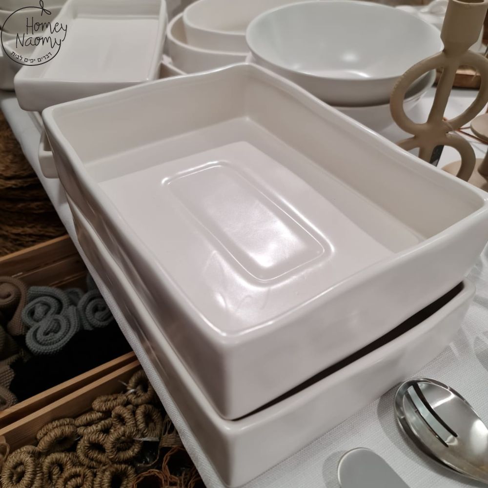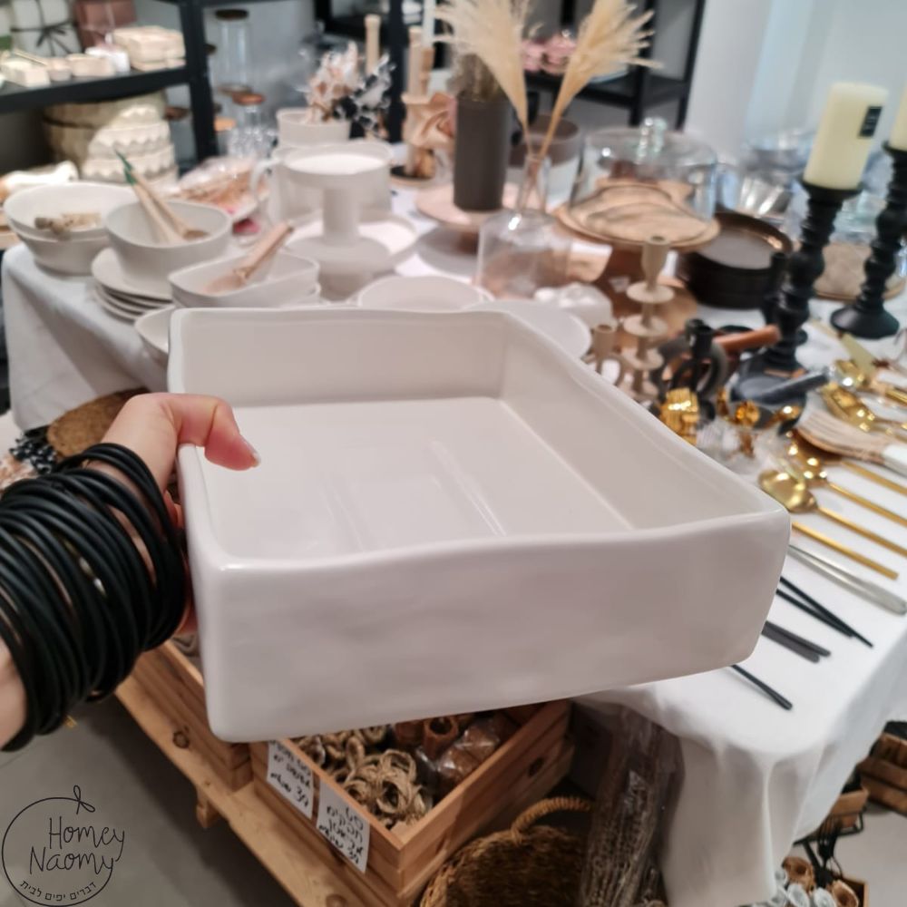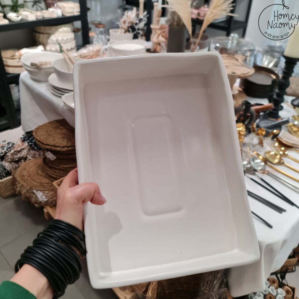תבנית מלבנית גבוהה מקרמיקה STONEWARE גימור מאט, פינות ישרות ובטקסטורה מרוקעת וא-סימטרי מתאימה לבישול, אפייה והגשה של עוגות, קישים, הגשת תוספות ועוד אורך: 31 ס”מ רוחב: 23 ס”מ גובה: 7 ס”מ