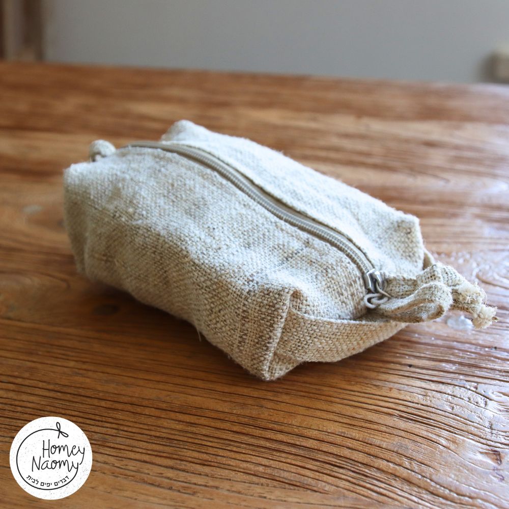 נרתיק מעוצב מבד יוטה (פשתן) משמש כתיק רחצה או תיק איפור מידה:19/13/5