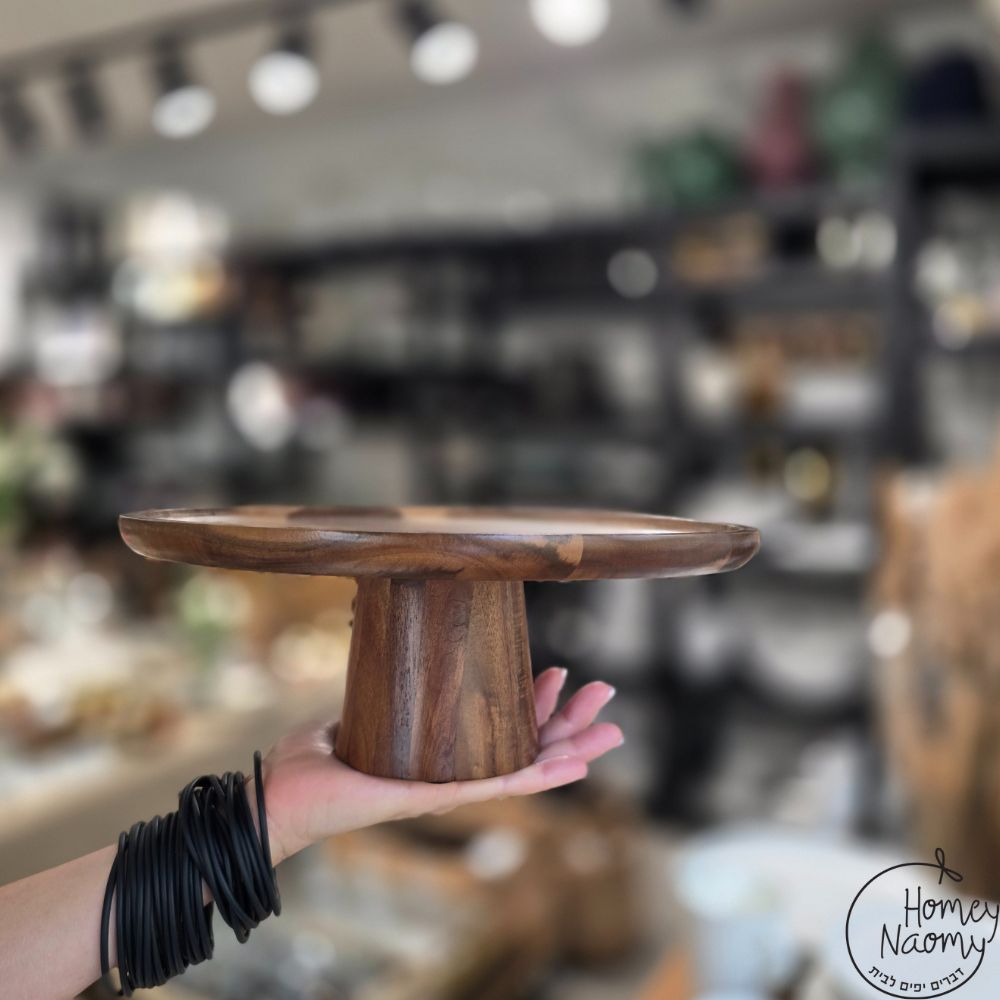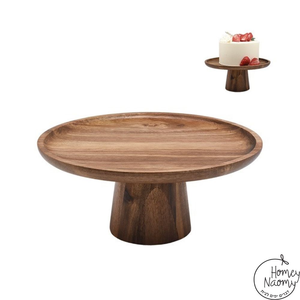 מגש עגול על רגל מעץ אקשיה משמש להגשת עוגות, גבינות, קישים ומאפים ולדקורציה בבית שטיפה ידנית בלבד ייתכן שינוי בטרקסטורת ובצבע העץ קוטר: 28 ס”מ גובה מגש: 11 ס”מ