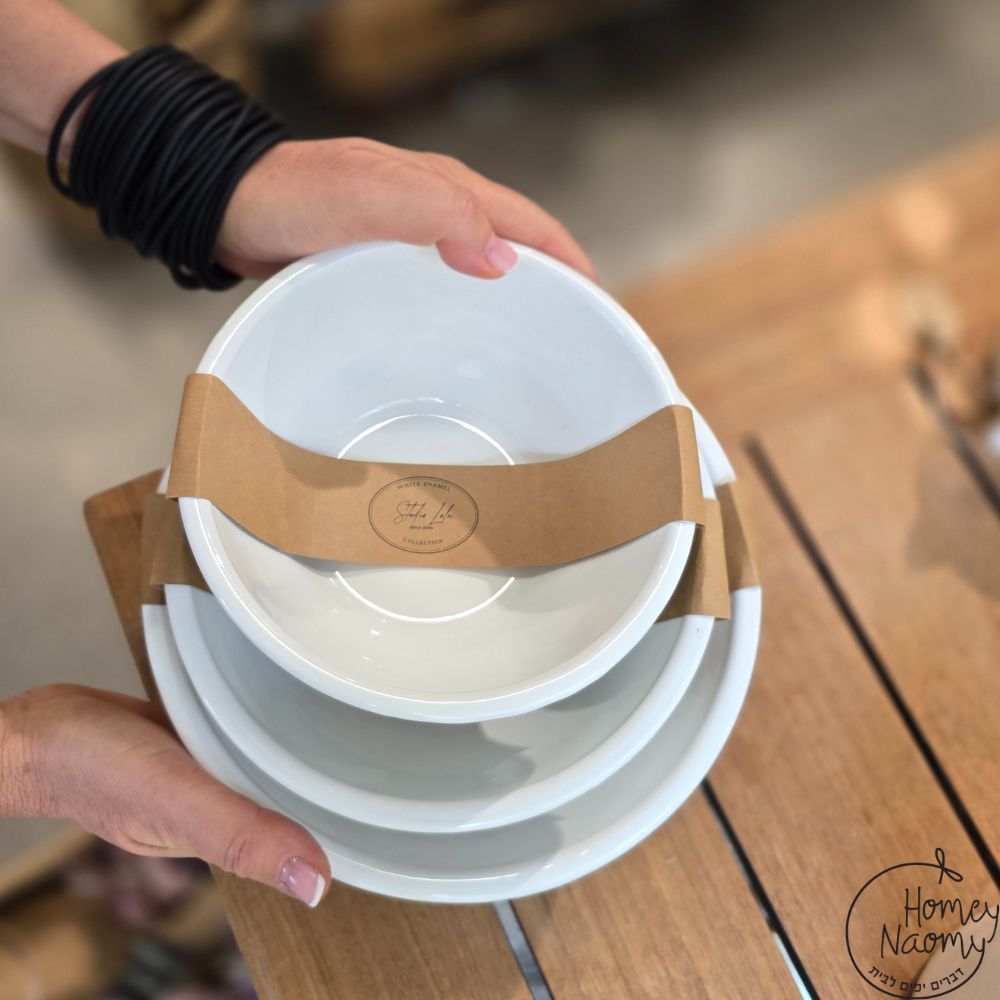 סט 3 קערות אמייל עמוקות ולבנות בעיצוב קלאסי ונקי, שמשתלב בכל מטבח ניתן לשטיפה במדיח קטן: קוטר 17 ס”מ, גובה 7 ס”מ בינוני: קוטר 25 ס”מ, גובה 7.5 ס”מ גדול: קוטר 23 ס”מ, גובה 9 ס”מ רוצים לדעת פרטים נוספים על כלי אמייל לחצו כאן